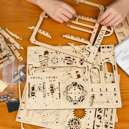 Découvrez la magie de la mécanique avec la piste à billes en bois ROKR Climber – un puzzle 3D de précision qui allie la beauté de l’ingénierie, l’apprentissage STEM et le divertissement pour toute la famille. Une fois assemblé, il suffit de tourner la manivelle et d’observer les billes d’acier filer le long des pentes en spirale, à travers le distributeur en tour et les élévateurs dans un système complexe d’engrenages.