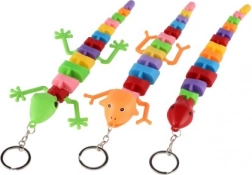 Porte-clés lumineux coloré en forme de lézard, de caméléon ou de serpent, qui plaira aux enfants comme aux adultes. En appuyant sur le bouton situé sur le visage, une lumière clignote dans la gueule, le corps est articulé et, grâce à l’anneau métallique, vous pouvez l’attacher facilement à vos clés ou à votre sac. Alimenté par 2× LR41 (incluses), longueur 28 cm, assortiment de couleurs, adapté à partir de 3 ans.