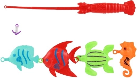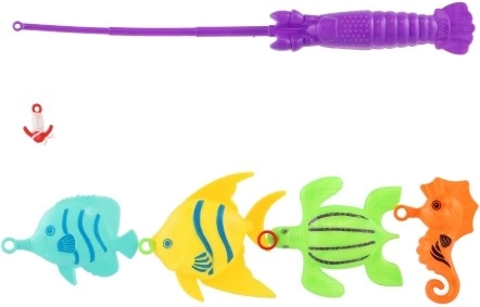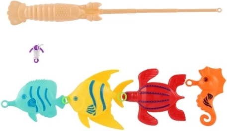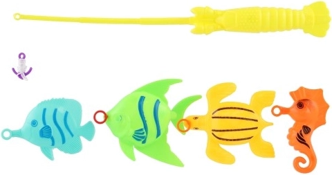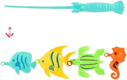 Le coffret contient 4 petits poissons colorés et une canne pour enfants avec hameçon. Grâce à sa conception légère, même les plus petits peuvent le manipuler facilement. Le set convient pour jouer dans la chambre comme dans l’eau. Les couleurs des différents éléments peuvent varier.