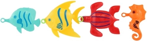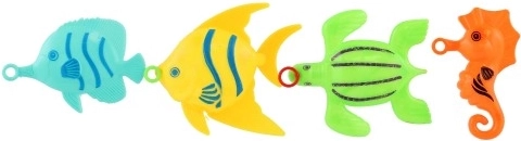 Le set comprend 4 petits poissons aux couleurs vives qui stimulent l’imagination des enfants et les motivent à jouer et à rivaliser – qui les attrapera le plus vite ?