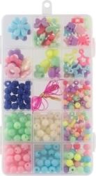Découvre la joie de créer avec ce set complet de perles, idéal pour les débutants et les jeunes créateurs. La boîte contient une large palette de couleurs et de formes – des billes aux petites fleurs – et grâce au cordon inclus tu peux commencer tout de suite à fabriquer des bracelets et colliers originaux. L’organiseur transparent à compartiments garantit que les perles restent triées et toujours à portée de main.