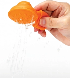 Versez de l’eau dans l’entonnoir et observez comment elle fait tourner le moulin ou déclenche la douche. Les enfants profitent de stimulations visuelles et tactiles à chaque bain.