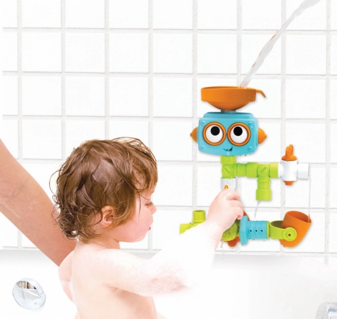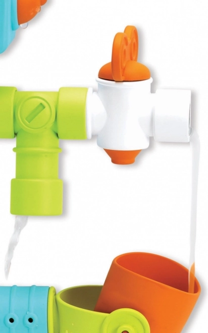 Ce robot aquatique d’Infantino est conçu pour un bain amusant et stimulant. Les pièces multicolores se connectent aisément pour créer divers circuits d’eau. Les enfants peuvent remplir l’entonnoir, déclencher l’écoulement à travers les tuyaux, regarder le moulin tourner et contrôler la direction grâce aux vannes.