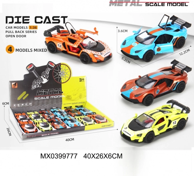 Profitez d’un divertissement rapide avec une petite voiture de course en métal à l’échelle 1:36. Le modèle offre des portes ouvrantes, une fabrication métallique de qualité et la fonction populaire pull back – tirez et laissez partir. Disponibles en 4 designs attrayants pour encore plus de plaisir et d’enthousiasme de collectionneur.