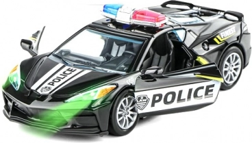 Profitez de poursuites pleines d’action et de sorties de service avec ce modèle de voiture de police en métal finement détaillé. La construction robuste en métal garantit une longue durée de vie, tandis que les portes ouvrantes et l’effet lumineux ajoutent de l’authenticité au jeu.