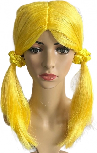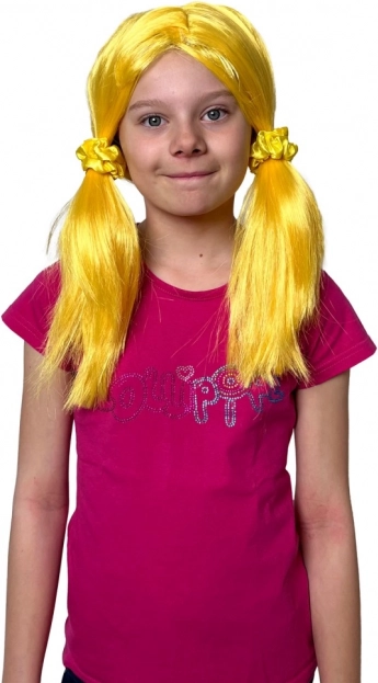 Deviens une star comme les LOLLIPOPZ préférées ! La perruque jaune avec deux couettes apporte énergie et couleur à ta tenue. Elle se met facilement en place et tient très bien, pour danser, chanter et jouer sans souci.
