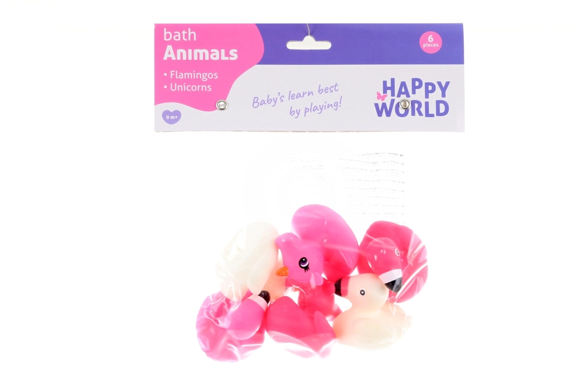 Animaux de bain pour les tout-petits Happy World – l’emballage contient 6 animaux – 3× flamant rose et 3× licorne. Fabriqué en plastique de haute qualité. Testé pour les tout-petits.