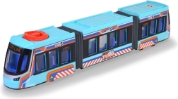 Deux parties reliées par un joint reproduisent une vraie rame de tramway et permettent de négocier les virages en douceur.