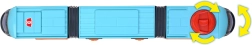 Un logo rotatif placé sur le toit permet aux enfants de contrôler intuitivement la direction de marche – à droite comme à gauche.