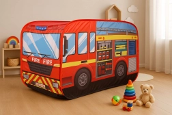 Une tente de jeu pour enfants élégante en forme de camion de pompiers apporte des heures de divertissement à la maison comme au jardin. Elle offre un , un tapis de sol imperméable, une entrée arrière et un toit ouvrant pour un jeu encore plus créatif. Sa structure légère en polyester se transporte facilement et les graphismes colorés de pompiers enthousiasmeront chaque petit héros.