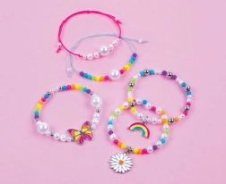 Contient tous les composants nécessaires, y compris des perles, des cordons et des breloques, pour réaliser cinq bracelets uniques.
