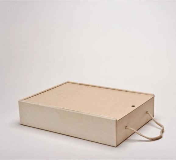L'ensemble complet est pratiquement emballé dans une mallette en bois avec un couvercle coulissant pour un transport facile.
