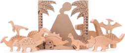 L’emballage du set est conçu pour servir de décor aux jeux créatifs. En découpant le carton le long des lignes indiquées, vous créez une scène préhistorique. Les jouets sont fabriqués en bois de hêtre, connu pour sa longévité et son respect de l’environnement. Le jeu et l’apprentissage vont de pair grâce aux matériaux naturels.