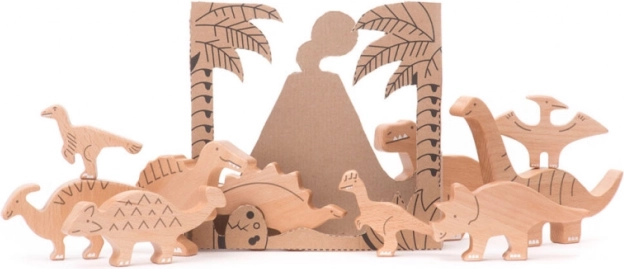 Les dinosaures en bois sont fabriqués en hêtre, réputé pour sa durabilité et son caractère écologique. Les jouets sont peints avec des couleurs non toxiques.
