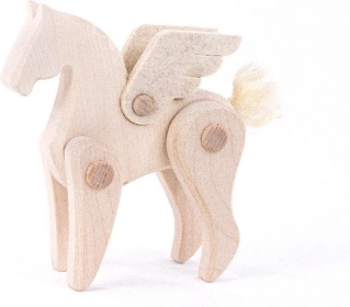 Le Pégase Bajo est un jouet qui évoque la vitesse et une liberté sans limites, inspiré par l’un des symboles mythiques les plus connus. Avec son corps et ses pattes articulées en bois de platane et ses ailes en feutre, il offre un effet riche et admirable.