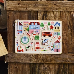 Découvrez la magie de la vieille ville avec ce labyrinthe magnétique coloré de Vilac et Ingela P. Arrhenius. Tandis que les enfants s'amusent, ils développent également leur motricité fine et leur orientation spatiale.