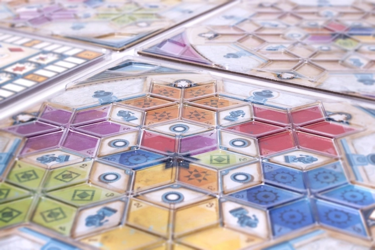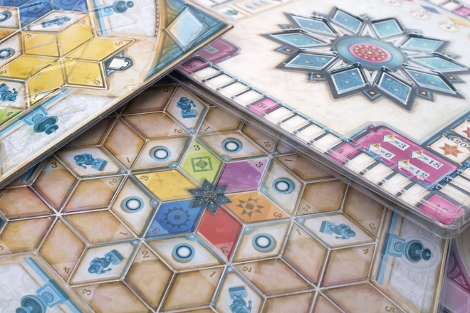 Les éléments qui se déplacent sur les plateaux du pavillon vous agacent ? Ou recherchez-vous de la variété ludique et des méthodes de score alternatives ? Dans les deux cas, Azul : Pavillon scintillant est la solution idéale ! Cette extension inclut un plateau d’organisation et de nouveaux plateaux de pavillons, qui vous permettront de mettre en œuvre des stratégies uniques. Le coffret comprend également des capots plastiques pratiques pour les plateaux, qui rehaussent non seulement l’esthétique du jeu, mais aident aussi à garder toutes les pièces parfaitement en place.