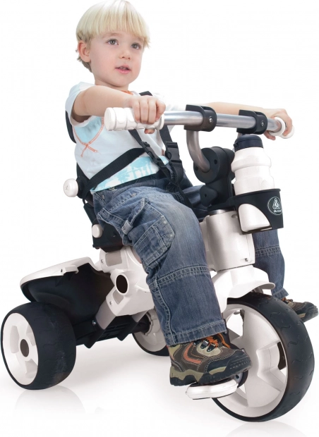Les pédales peuvent être fixes ou en roue libre, et une fois les éléments de protection enlevés, l'enfant peut contrôler le tricycle lui-même.