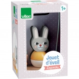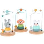 Ce labyrinthe en bois avec parcours métallique et figurine de lapin propose une activité ludique où les enfants font avancer des perles et des formes (carotte, feuille) sur une trajectoire ondulée. Le jouet favorise le développement de la motricité fine, la concentration et la patience, tout en restant sûr et stable grâce à sa base en bois solide.