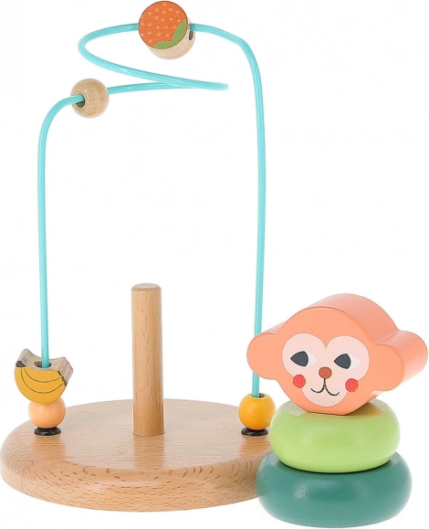 Conçu pour stimuler la motricité fine et les capacités cognitives, ce jouet invite les enfants à déplacer des perles colorées le long de fils métalliques.