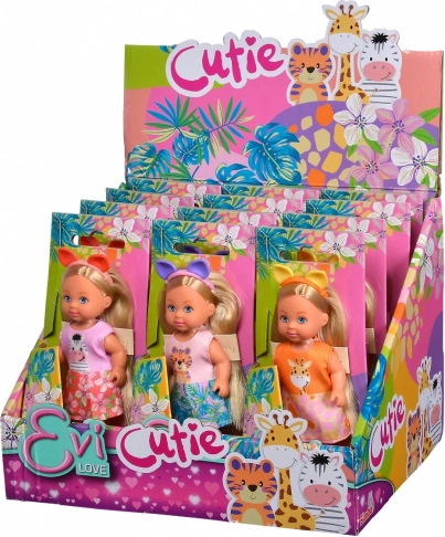 Adorable poupée Evi LOVE en robe colorée, avec petites chaussures et serre-tête assorti avec oreilles, pour ravir chaque enfant. La poupée mesure environ 12 cm, idéale pour les petites mains et favorise le jeu créatif. Le conditionnement est vendu comme présentoir de 12 pièces en assortiment de 3 variantes.