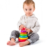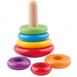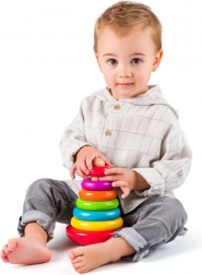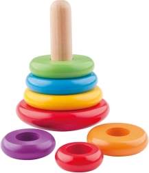 Ce jouet combine deux excellentes façons de s’amuser : en pyramide et en toupie. Les enfants enfilent les anneaux en bois colorés sur la tige du plus grand au plus petit tout en développant leur créativité et leur motricité fine. De plus, le jouet peut être lancé comme une toupie, ajoutant un niveau de divertissement supplémentaire.
