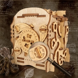 Plongez dans l’univers du capitaine Nemo et de son légendaire Nautilus. Ce casse-tête mécanique ingénieux allie superbe artisanat et intrigue captivante qui mettront à l’épreuve votre patience et votre ingéniosité. À l’intérieur se cache une cachette secrète (env. 2 × 2 × 4 cm) idéale pour de l’argent, un bijou ou une petite surprise.