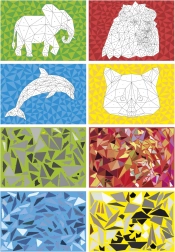 L'ensemble comprend divers designs constitués de formes géométriques et de couleurs, permettant de créer des œuvres d'art impressionnantes.