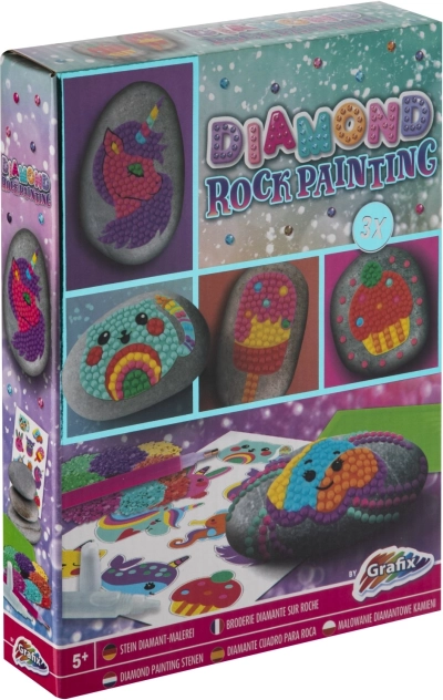 Le kit Grafix Peinture diamant : Décoration de galets est idéal pour ceux qui recherchent une relaxation créative. Vous pouvez facilement créer des décorations à l’aide d’un stylo applicateur et de strass colorés. Le kit contient tout le nécessaire pour réaliser une superbe création sans aucune compétence artistique.