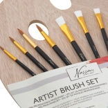Ensemble de pinceaux pour artistes sur palette en bois est idéal pour diverses techniques artistiques. Le design élégant avec des poignées noires et des ferrules dorées offre une apparence professionnelle et une haute qualité de fabrication.