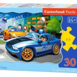 Ce puzzle est idéal pour les jeunes débutants. Grâce aux pièces plus grandes et aux couleurs vives, les enfants assemblent facilement tout en exerçant leur motricité fine, leur patience et leur concentration. Le thème de la course-poursuite policière apporte de l’action et du suspense qui plaisent aux enfants.