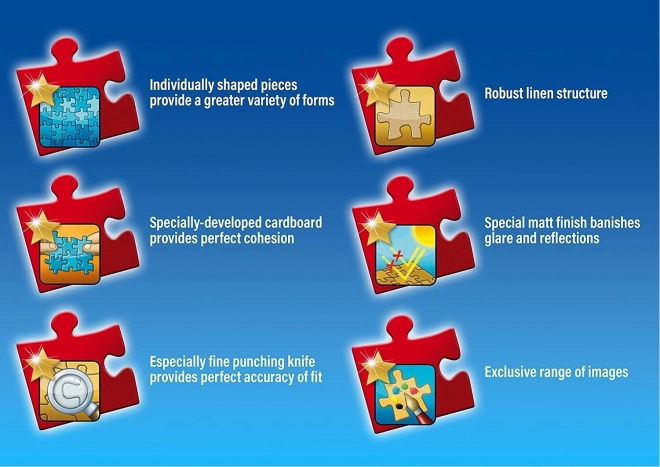 Avec ses 1000 pièces, c’est un choix idéal pour puzzleurs intermédiaires et confirmés. L’image terminée de 69,3 × 49,3 cm se prête parfaitement à l’encadrement et à l’exposition.