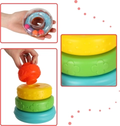 Cette tour sensorielle stable et sûre apporte aux enfants la joie d’apprendre par le jeu. Les anneaux de différentes tailles, couleurs et textures favorisent la motricité fine, la coordination œil–main et la reconnaissance des couleurs. L’un des anneaux possède une partie supérieure transparente avec des billes qui crépitent, stimulant également l’ouïe.