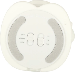 Vous pouvez choisir deux modes d’éclairage — un blanc chaud stable avec réglage de la luminosité et des couleurs RVB changeantes. Le contrôle est simple au toucher ou via le bouton situé sur la face inférieure. Le minuteur intégré garantit que la veilleuse s’éteindra automatiquement après l’endormissement, et grâce à la batterie intégrée de 1200 mAh, elle peut fonctionner jusqu’à env. 11 heures par charge.