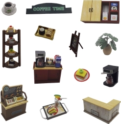 De la machine à café et la vitrine à pâtisseries jusqu’aux plateaux, boissons et décorations – chaque détail renforce le réalisme de votre modèle.