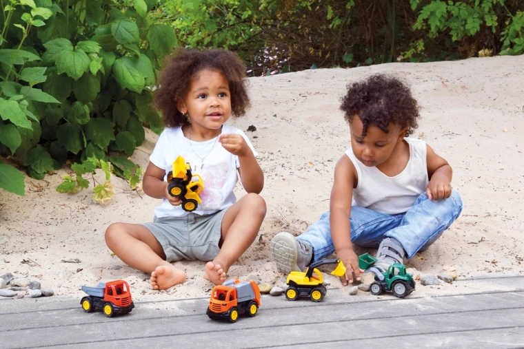 Des formes arrondies et une prise en main facile garantissent un jeu sûr pour les plus petits. Grâce à sa taille, le tracteur se glisse dans un petit sac à dos ou le panier de la poussette, et peut accompagner les enfants à l’aire de jeux, au parc ou au bac à sable.