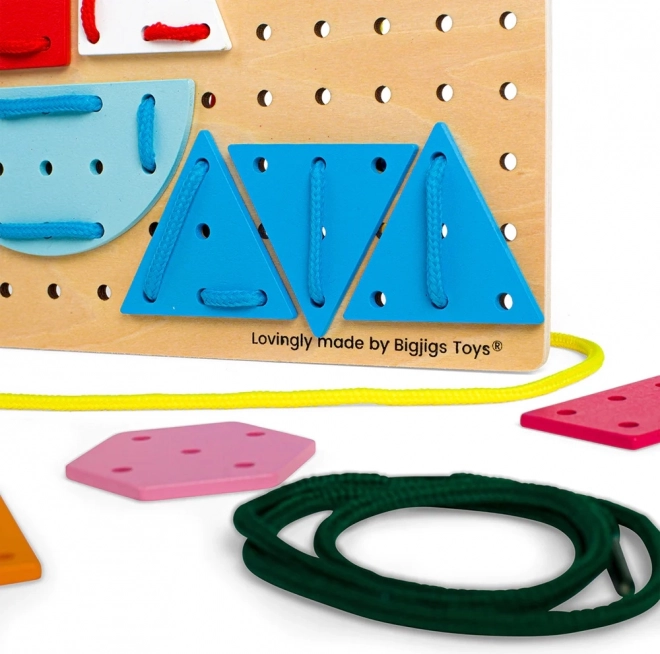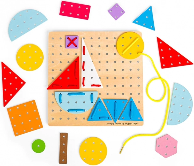 Enfiler les lacets à travers les trous de la planche et des pièces renforce les petits doigts, entraîne la coordination œil–main et améliore la concentration. Une activité idéale pour les enfants d’âge préscolaire.