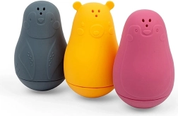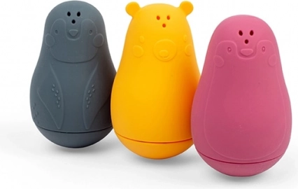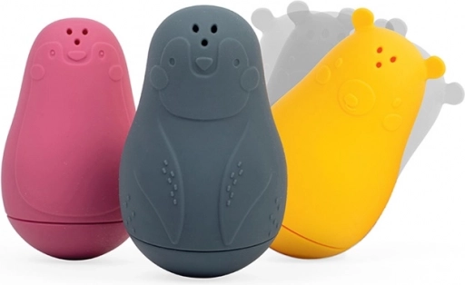 Le mignon pingouin, l’ours polaire et le phoque transforment chaque bain en moment ludique. Il suffit de les remplir d’eau, de presser et d’observer le jet d’eau jaillir des trois ouvertures supérieures. Grâce au silicone 100 % doux mais résistant, les jouets sont agréables au toucher, sûrs pour les enfants et plus respectueux de l’environnement.