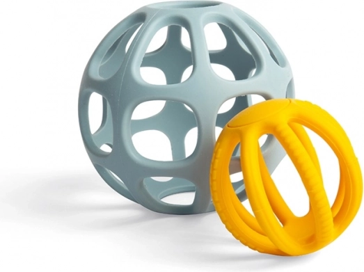 Ce set ingénieux comprend une grande et une petite balle avec une structure ajourée pour une prise en main aisée par de petites mains. Le silicone 100 % sans plastiques est souple, hygiénique et doux pour les gencives – idéal comme anneau de dentition et comme jouet pour le jeu quotidien à la maison ou en déplacement.