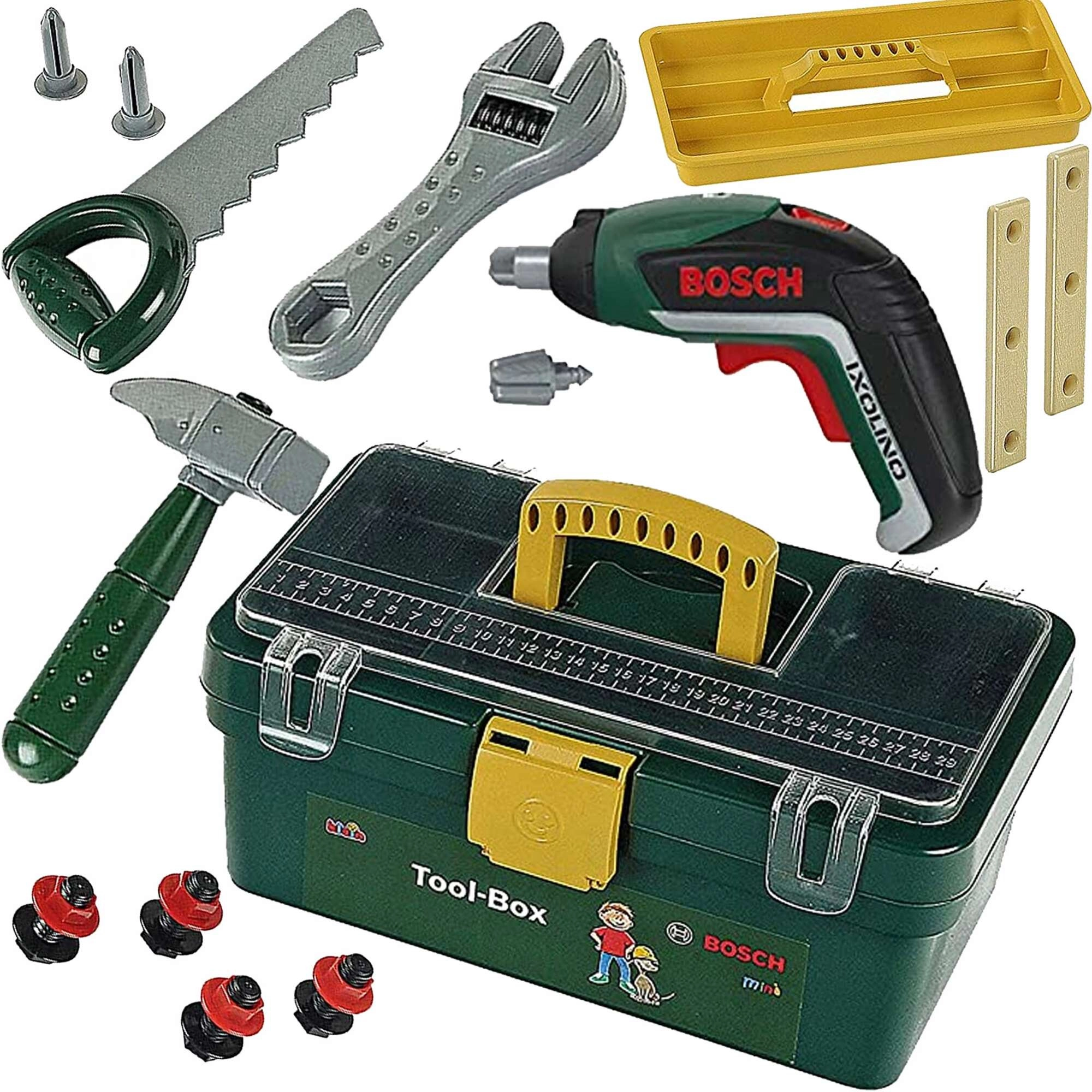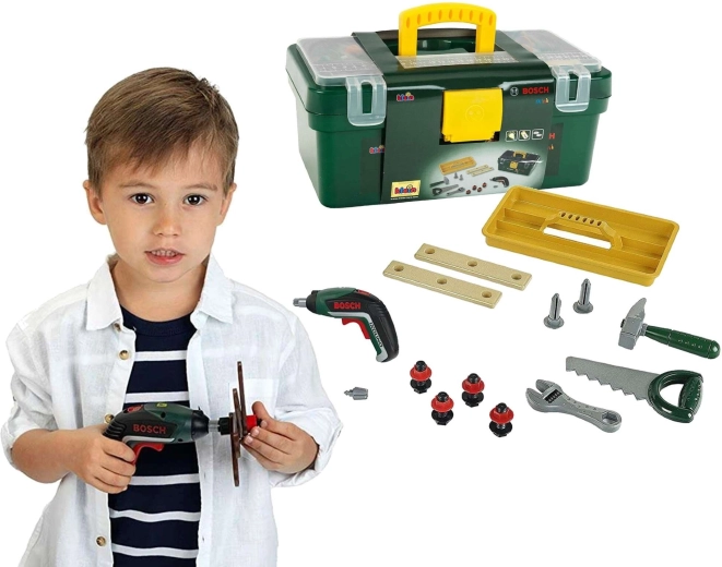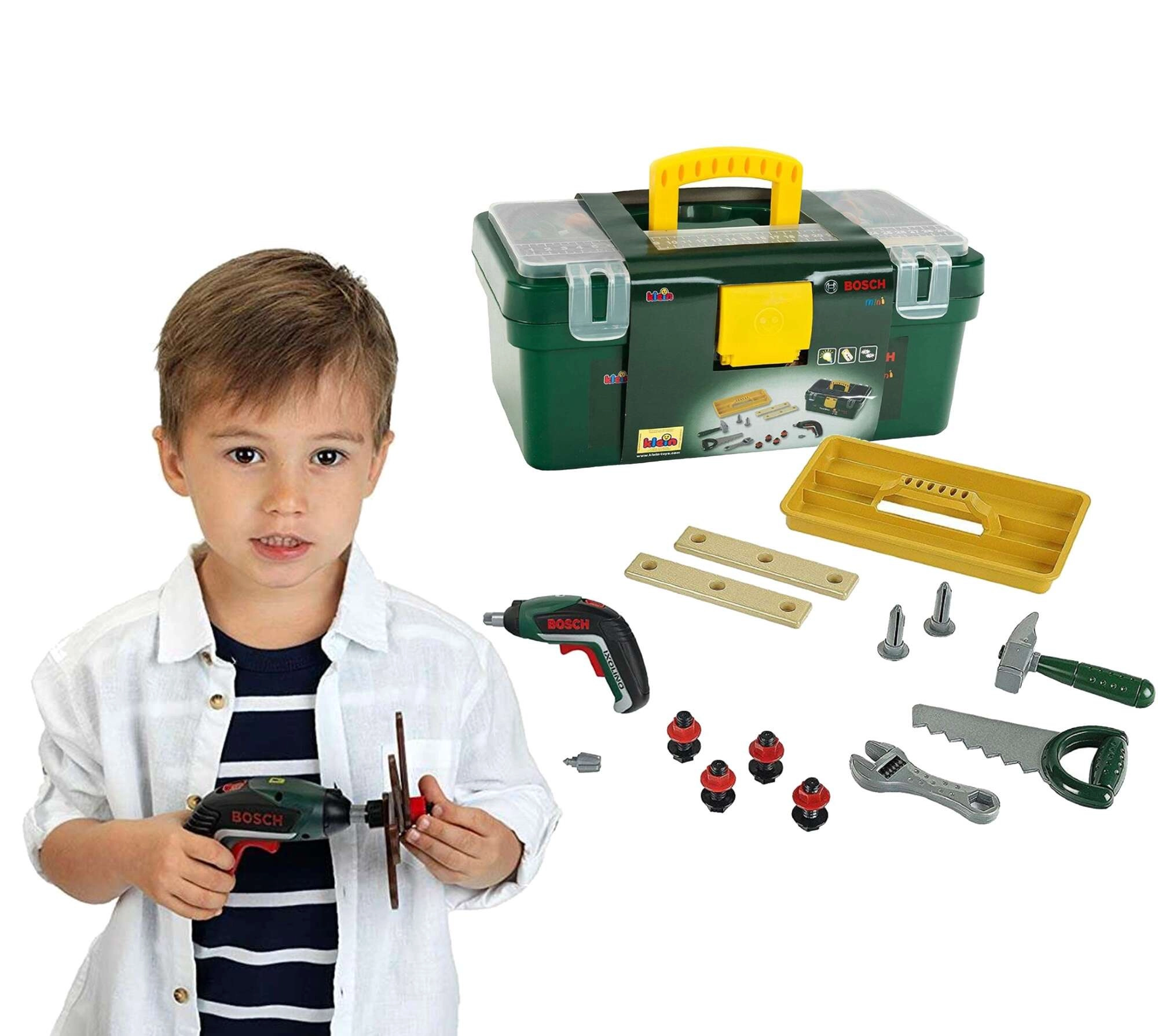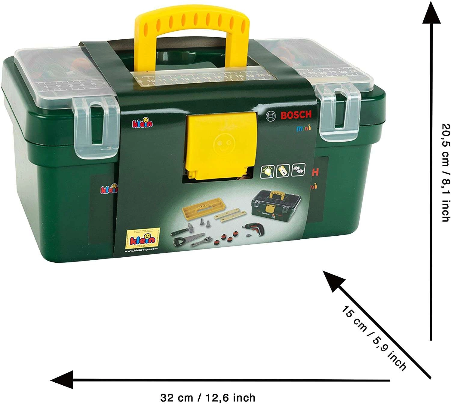 La mallette d’outillage pour enfants de la marque KLEIN au design sous licence BOSCH offre un jeu de réparation sûr et amusant. La mallette pratique vert foncé avec poignée jaune et couvercle transparent renferme un riche ensemble d’outils, dont une perceuse sans fil IXOLINO II avec rotation gauche/droite, une scie, un marteau, une clé à molette, des vis et des plaques de construction. Un excellent choix pour développer la motricité, la créativité et le jeu de rôle dès 3 ans.