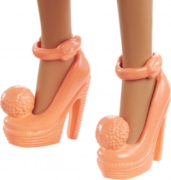 Les lunettes de soleil blanches et les chaussures à plateforme couleur pêche soulignent la personnalité de la poupée et multiplient les possibilités de style à chaque jeu.