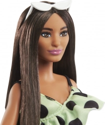 Découvrez la diversité de la collection Barbie Fashionistas, qui encourage les enfants à exprimer leur personnalité à travers le style. Cette poupée au type de corps original, aux longs cheveux bruns et à la remarquable combinaison menthe à pois affiche un look tendance, prête pour toutes les aventures. Son style est rehaussé par des lunettes blanches et des chaussures à plateforme, offrant d’infinies possibilités d’associations.