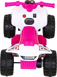 Ce quad électrique compact est idéal pour les premières expériences de conduite des enfants. La commande est très simple : l’enfant accélère en appuyant sur un bouton dans la poignée et peut choisir la direction avant / arrière. Sa construction robuste avec une charge maximale jusqu’à 30 kg et sa capacité de franchissement grâce aux 4 grandes roues apportent de l’assurance à la maison comme en plein air.