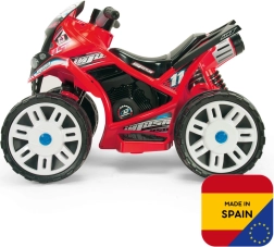 Le traitement précis de la marque espagnole Injusa assure fiabilité et longévité du produit. Un design magnifique complété par les phares avant et une construction robuste. L'emballage contient non seulement le quad, mais aussi la batterie et le chargeur, offrant aux parents et aux enfants la possibilité d'une utilisation immédiate.