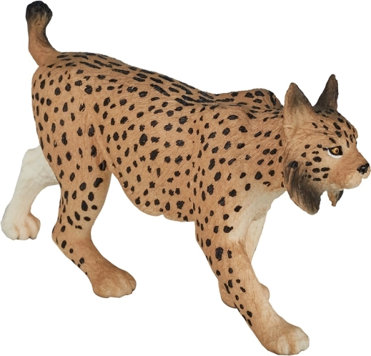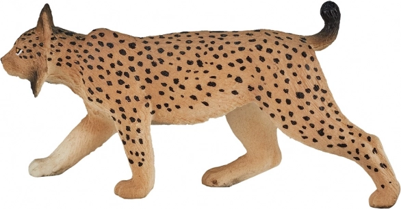 La texture fine du pelage, les taches caractéristiques et les pinceaux auriculaires confèrent à la figurine un aspect authentique apprécié des enfants et des collectionneurs.