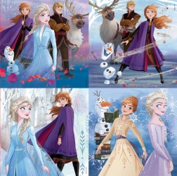 Profitez d’un divertissement créatif avec une collection de quatre puzzles progressifs inspirés du film FROZEN 2. Les ensembles comprennent 12, 16, 20 et 25 pièces et sont rangés dans une pratique valisette en plastique pour un transport facile. Idéal pour les enfants dès 3 ans – développe la motricité fine, la concentration et la logique.