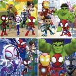 Ce set de puzzles pour enfants est idéal pour les fans de Disney et de leur Spidey préféré. Chaque boîte contient quatre puzzles progressifs avec des niveaux de difficulté variés. Avec un plus petit nombre de pièces, ils sont parfaits pour les jeunes enfants qui commencent à découvrir l’univers des puzzles, tandis qu’un plus grand nombre de pièces apporte un défi supplémentaire.