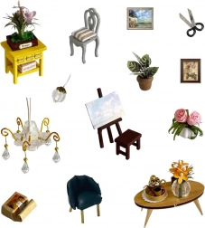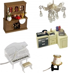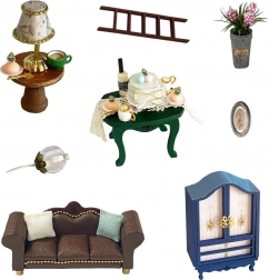 Des pièces de mobilier miniatures et des décorations sont incluses; elles s’assemblent et se disposent facilement. Chaque détail renforce l’aspect réaliste du modèle terminé.