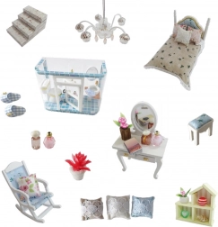 Cette élégante maison miniature offre des intérieurs richement équipés — chambre, espace de vie et petite cuisine — ainsi qu’une zone extérieure avec aire de jeu. Grâce aux détails soigneusement réalisés, au mobilier et aux accessoires, vous créerez une scène saisissante à exposer ou pour le jeu imaginatif. L’éclairage LED installé apporte une atmosphère chaleureuse en soirée (2× AAA non incluses).