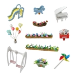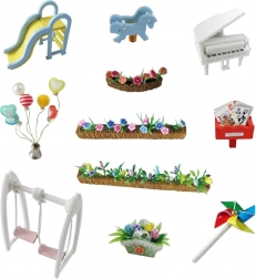 - Accessoires détaillés — mobilier, fleurs, aire de jeu, décorations et autres miniatures.